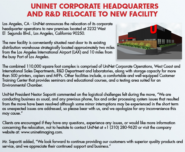 September 2008 UniNet Corporate Headquarters and R&D Relocate to New Facility (Source: UniNet article)
