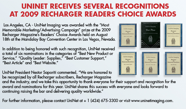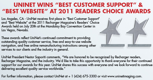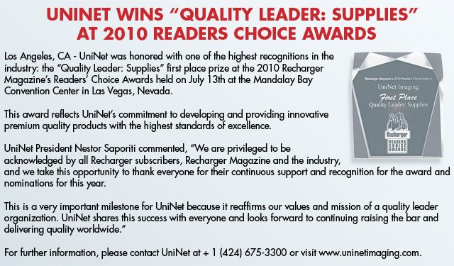 August 2010 UniNet Wins Quality Leader: Supplies Award at Recharger Readers Choice (Source: UniNet article)