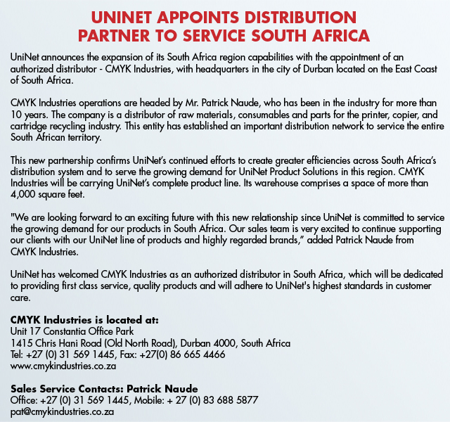 August 2015 UniNet Appoints Distribution Partner to Service South Africa (Source: UniNet article)