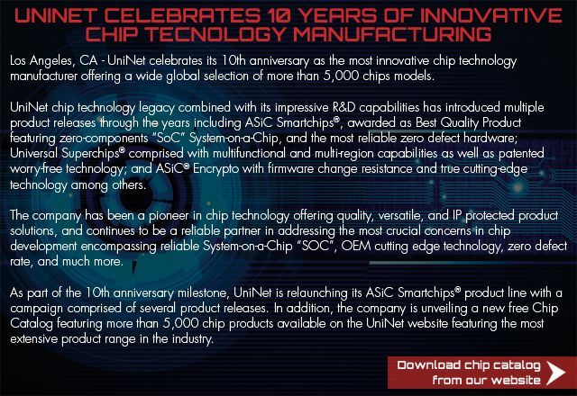 October 12, 2016 UniNet Celebrates 10 Years of Innovative Chip Technology Manufacturing (Source: UniNet Article)